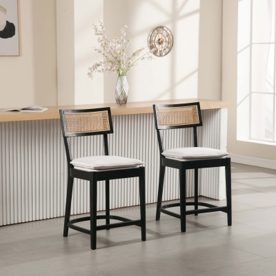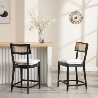 CIMOTA 26” Schwarze Barhocker aus Holz und Rattan, 2er-Set