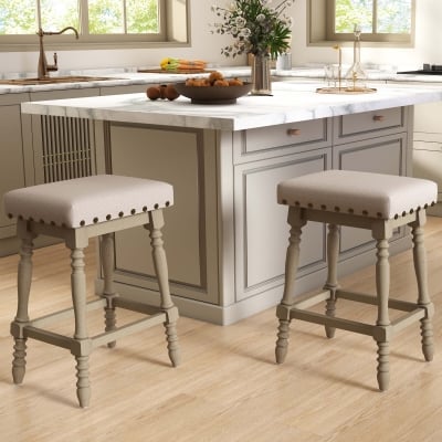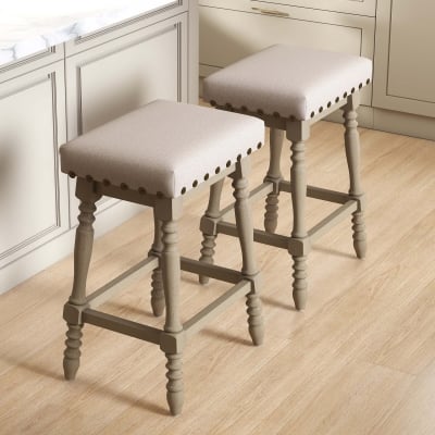 Janoray 26,9" hohe Barhocker mit Leinenpolsterung und Rückenlehne, 2er-Set