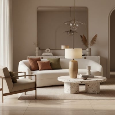 Moderne Ceruna Keramik-Tischleuchte – Skulpturaler Korpus, klare Oberfläche für Eingangsbereich und Wohnzimmer