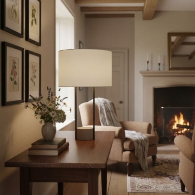 Ceruna Tischleuchte mit Leinenschirm und Keramikfuß – Metallgestell und Keramiksockel für die Beleuchtung von Homeoffice und Wohnzimmer