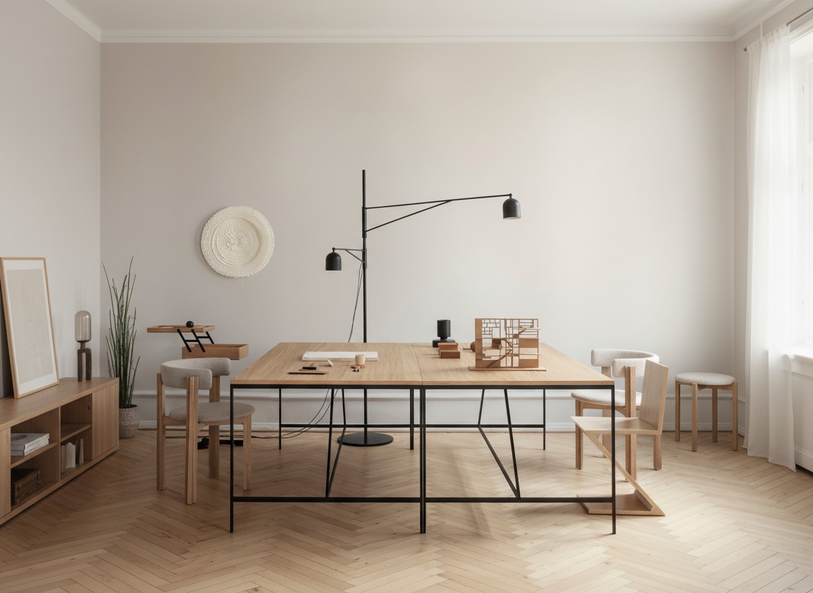 Luma Minimalistische Industrie-Tisch- und Stehleuchte – Metallgestell mit weichem Stoffschirm für Zuhause und Büro